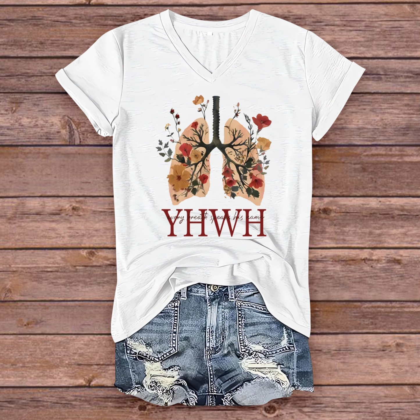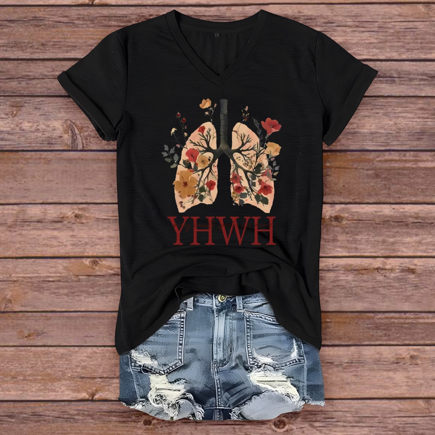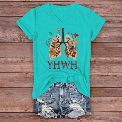 YHWH Every Breath Speak His Name Pattern V-Neck T-Shirt