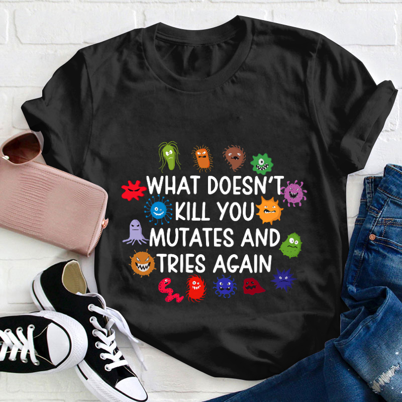 What Doesn't Kill You Mutates And Tries Again Teacher T-Shirt