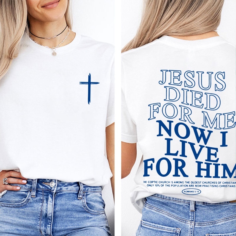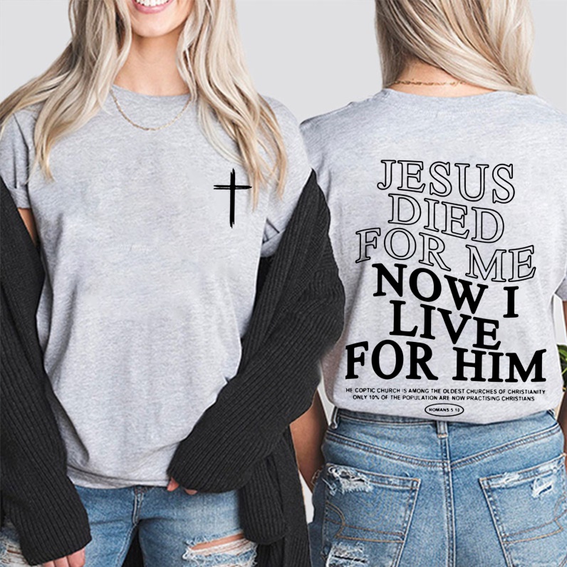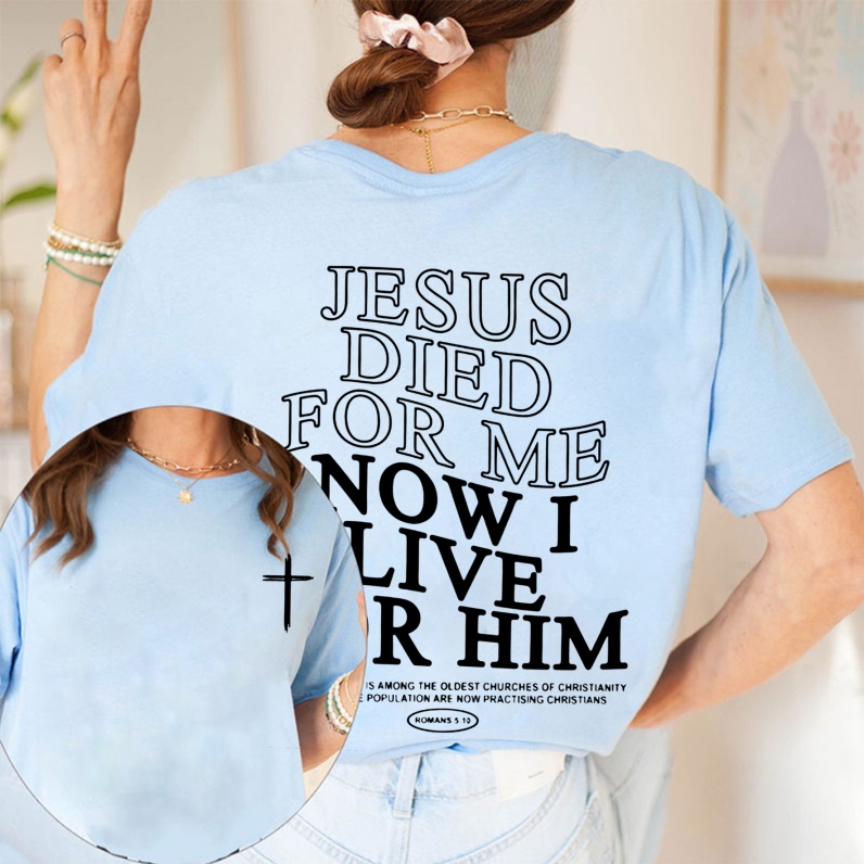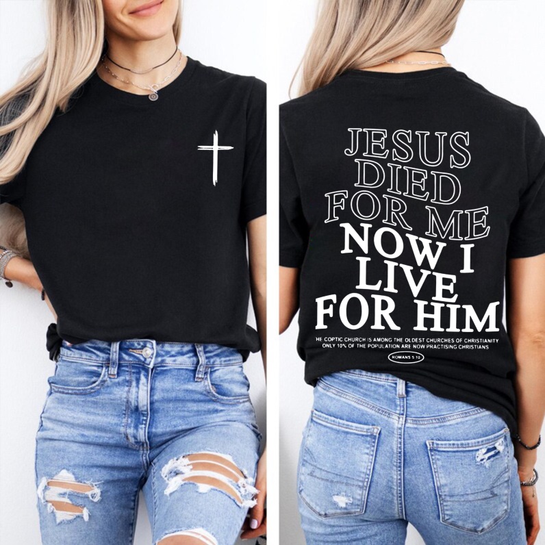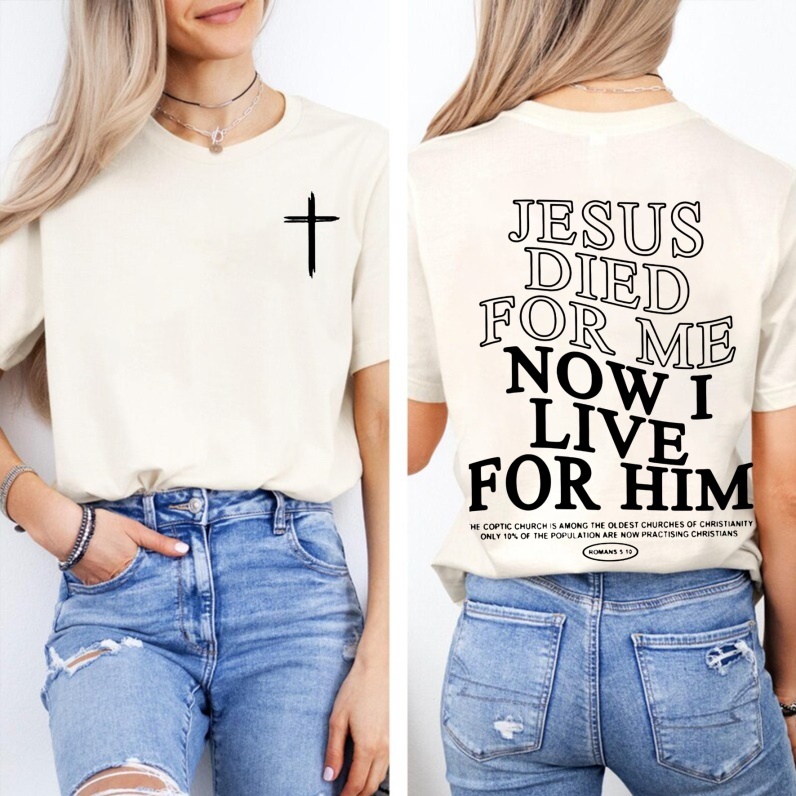 Jesus Died For Me Now I Live For Him Christian Cotton T-shirt