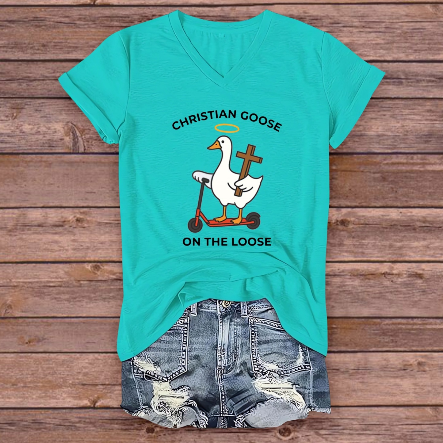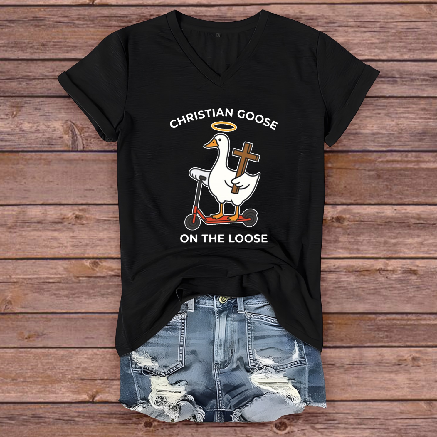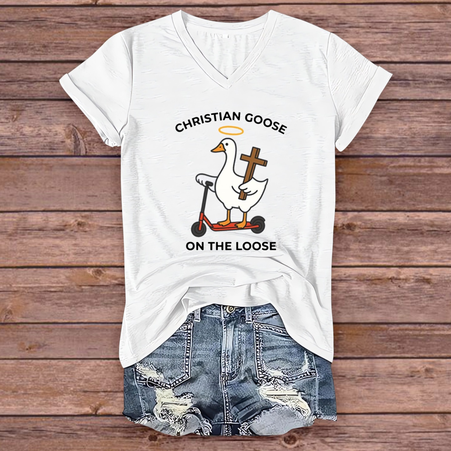 Women's Christian Goose On The Loose Pattern V-Neck T-Shirt